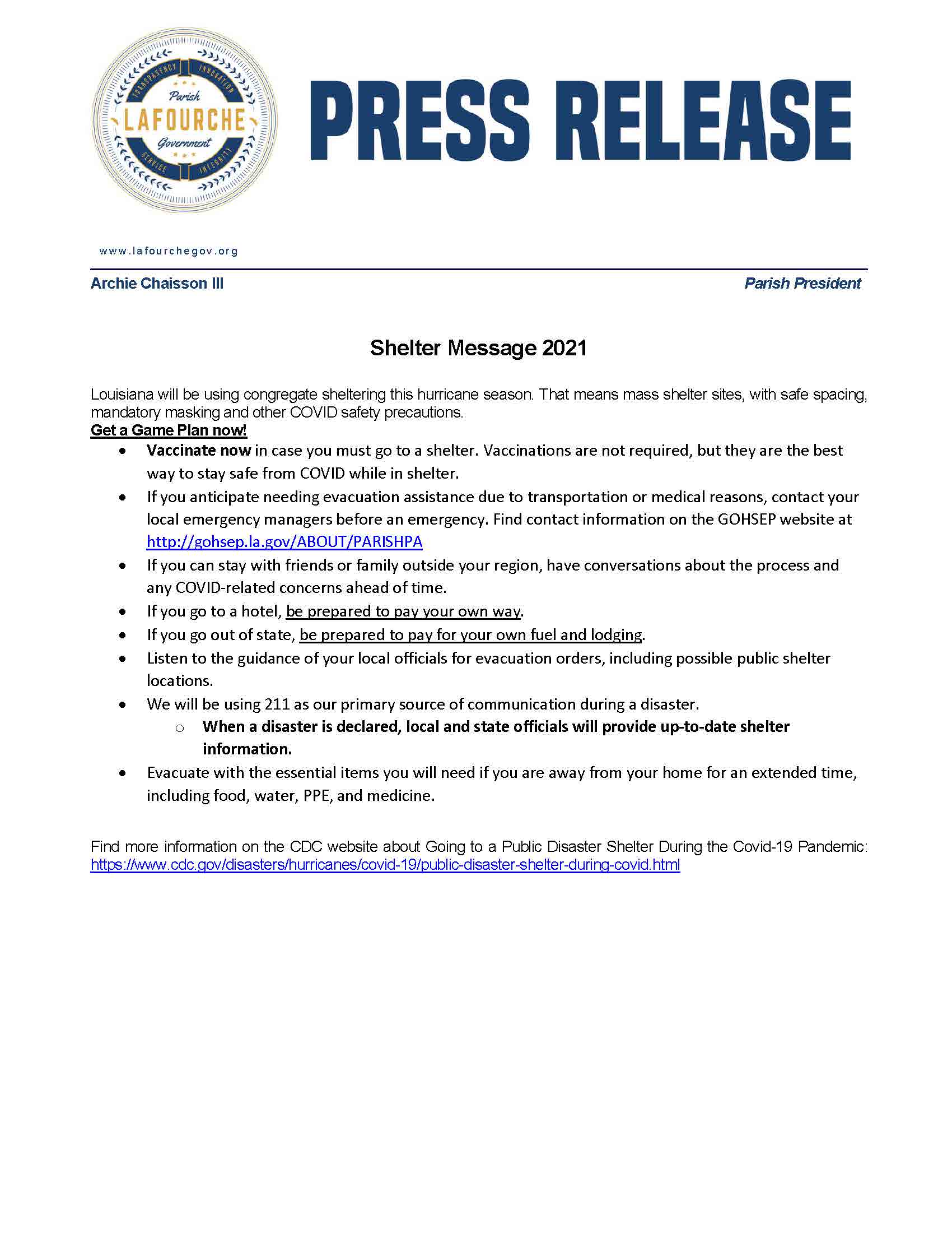 Lafourche Parish Shelters